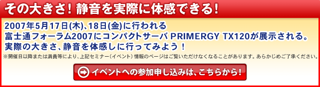 サーバには24時間365日の運用が求められるため、富士通のPRIMERGYシリーズは『止めない・止まらない』を目指して、 信頼性や可用性にこだわりをもって開発されてきた。コンパクトではあるものの、 PRIMERGY TX120は高信頼性を求める姿勢を継承している。