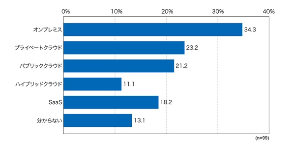 次に導入形態を聞いたところ、「オンプレミス」(34.4%)が最多で、次いで「プライベートクラウド」(23.2%)、「パブリッククラウド」(21.2%)となった。他にも「SaaS」(18.2%)や「ハイブリッドクラウド」(11.1%)を合わせ、クラウドERPを利用している割合は73.7%とオンプレミスを大きく上回る。2024年3月に実施した同調査との比較では、オンプレミスが14.8ポイント減少した一方でクラウドが19.8ポイントも増加しており、オンプレミスからの移行が顕著に進んでいる(図1)。