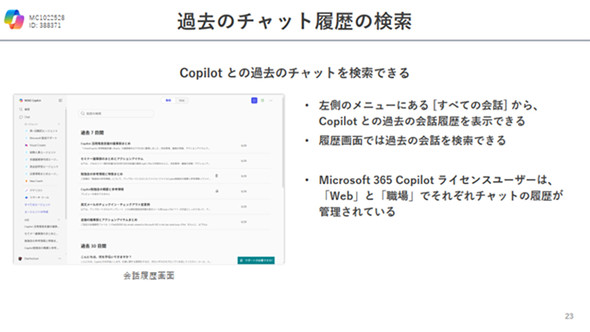 Microsoft 365 Copilotは6〜7月にかけて、チャット履歴検索やAIエージェントの提供開始に加えて、メール添付要約など複数の機能強化を実施した。それらを一つ一つ振り返っていこう。
