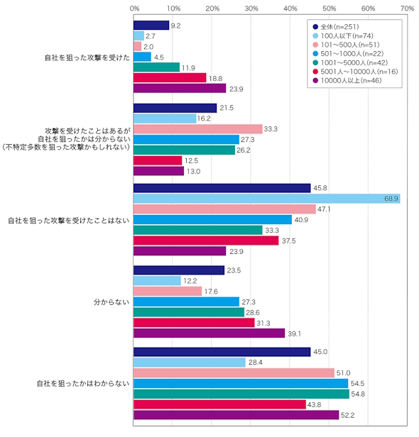 攻撃を受けた企業の半数が「自社を狙ったか分からない」状況