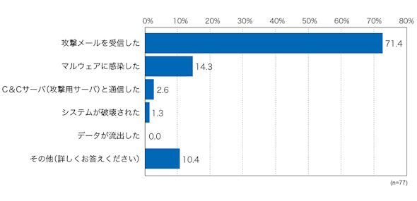 はじめに、不特定多数を狙った攻撃ではなく情報資産を含む“自社”を狙ったメール攻撃を受けた経験があるかどうかを聞いた。