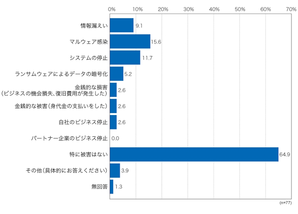 他にも前回との比較では「マルウェア感染」が5.3ポイント増え、「システム停止」が6.1ポイント増加しており、いま一度対策の見直しをお勧めしたい。