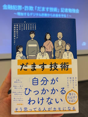 最後に登壇した、ラックの小森美武氏(金融犯罪対策センター 金融犯罪対策エバンジェリスト)は、犯罪被害総額の急増に対して同センターができることをまとめた書籍を紹介した。『だます技術』(技術評論社)という書籍だ。「できれば同僚の方、それからご家族にもお読みいただきたい」と述べた。